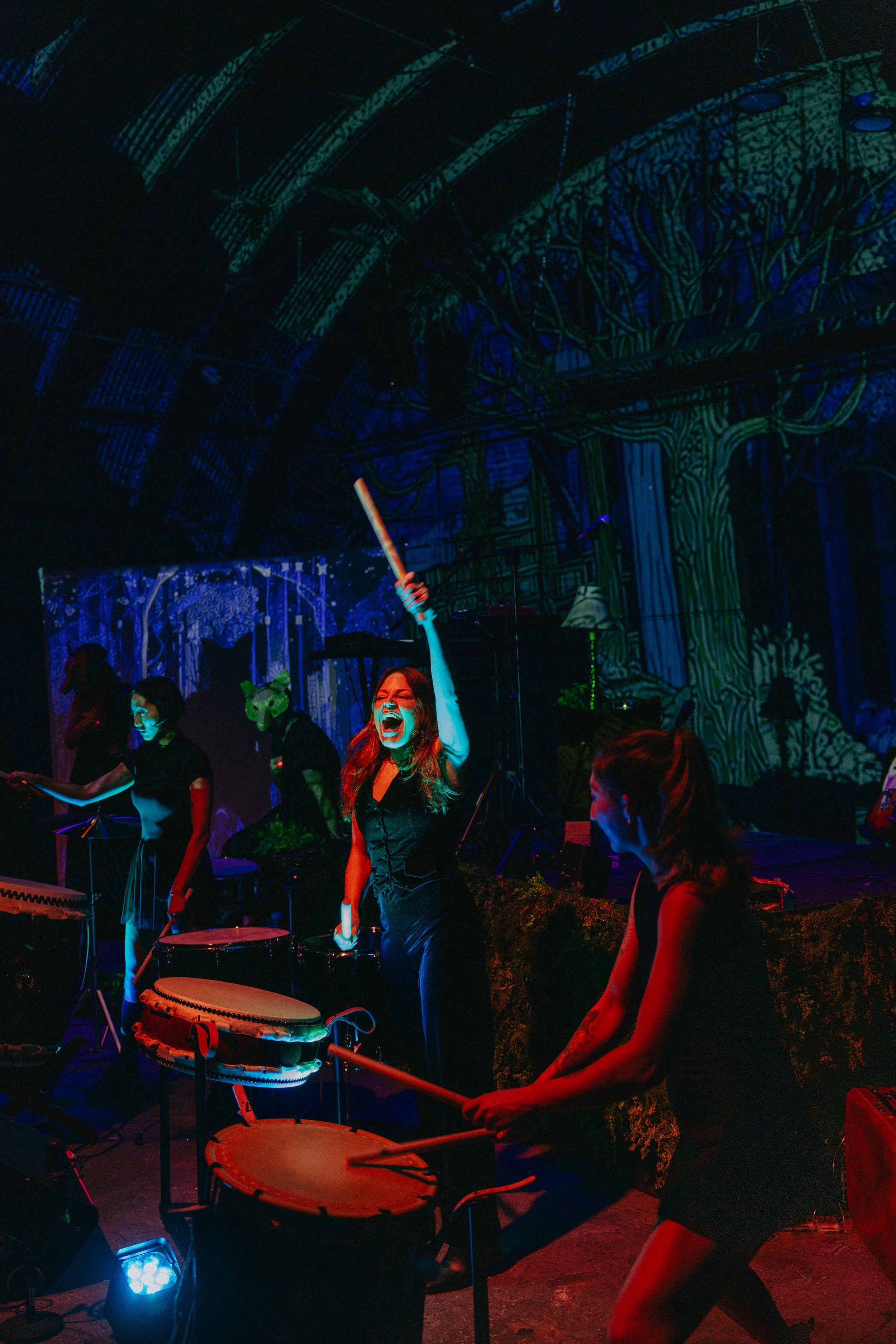 The Ballad of Isolde is a concert based on an electro-folk concept album that illuminates the mythic journey of young Isolde as she breaks free from the plastic confines of her past, loses herself in the wilderness of her shadow self, and transforms. The music balances acoustic and electronic vibrations, taiko drums and trip-hop rhythm loops, ethereal harmonies and discordant vocalizations. Modern dance and ritual movement combine with film and image projection to bring the story to life.